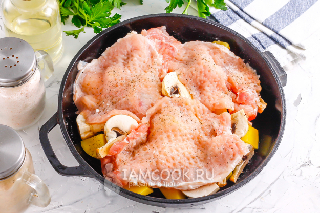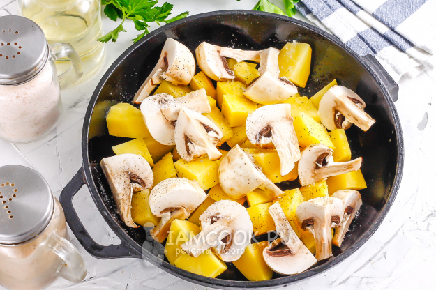Посолите и поперчите. По желанию вы можете добавить и другие специи либо пряности, к примеру - грибную приправу.
