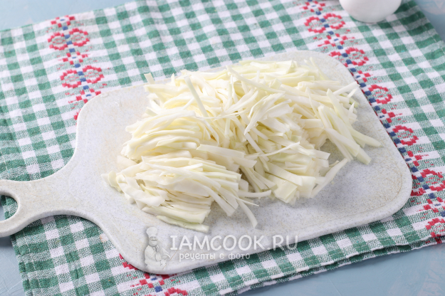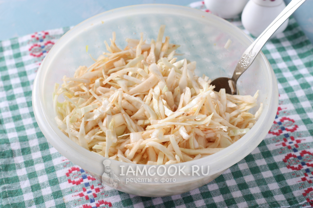 Сложить капусту в миску, добавить к ней нарезанный кубиками лук и разбавленную водой томатную пасту.