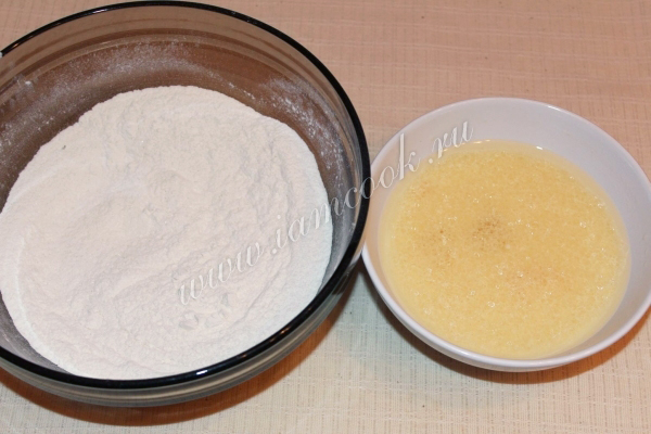 Нам понадобятся продукты, две миски и ложка. Венчик, а тем более миксер здесь абсолютно не нужен. В первую более глубокую миску просеиваем все сухие ингредиенты: муку, сахар, разрыхлитель, соль и мускатный орех. Все тщательно перемешиваем!