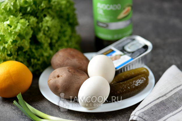 Подготовьте продукты для салата из печени трески с маринованными огурцами. Помойте картофель и яйца под проточной водой, переложите в сотейник, поставьте вариться. Картошка обычно готова за 15-20 минут, яйца занимают 8-10 минут времени. Остудите, очистите. Также помойте листовой салат и вытрите его бумажными полотенцами.