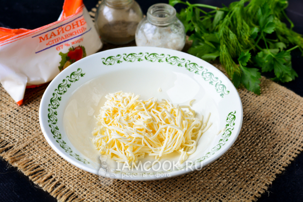 Плавленый сыр натрите на терке и выложите в удобную емкость. Сыр используйте вкусный и мягкий.