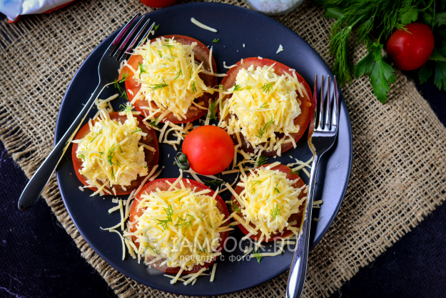 Присыпьте закуску натертым на средней терке твердым сыром, образуется своеобразная "шубка".