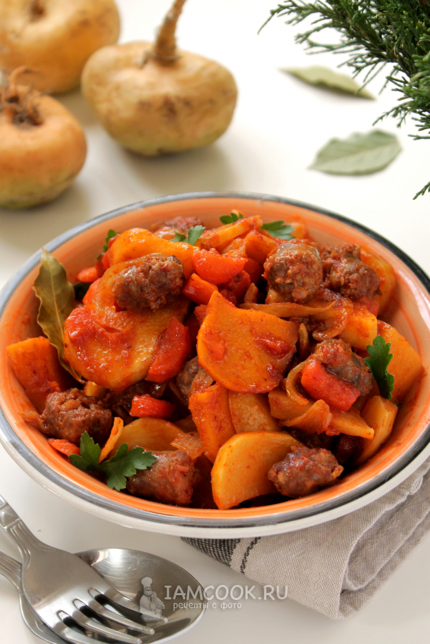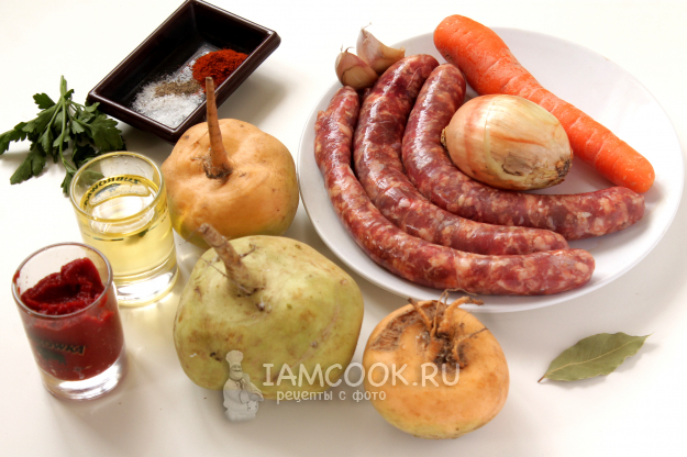 Возьмите продукты для приготовления жаркого из репы по списку.