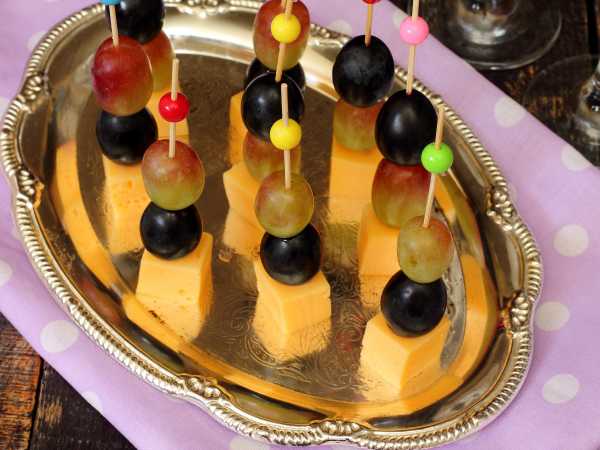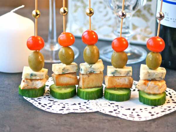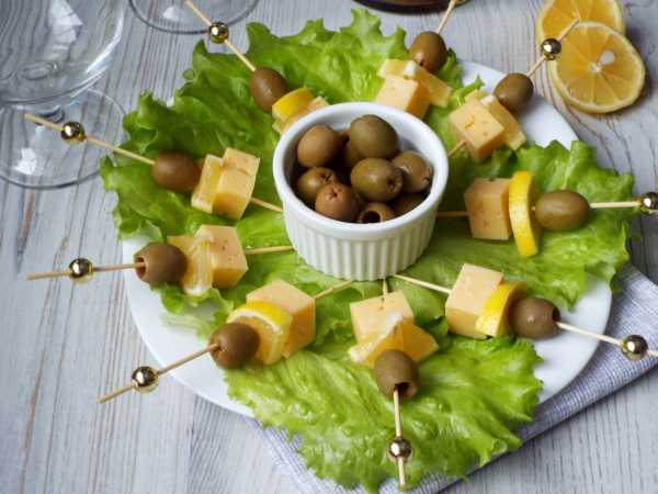 На шпажки нанизать оливки и креветок.