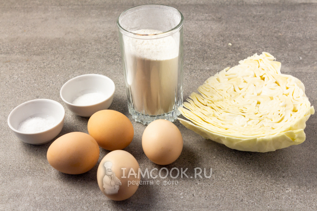 Для приготовления шарлотки с капустой подготовьте необходимые продукты.