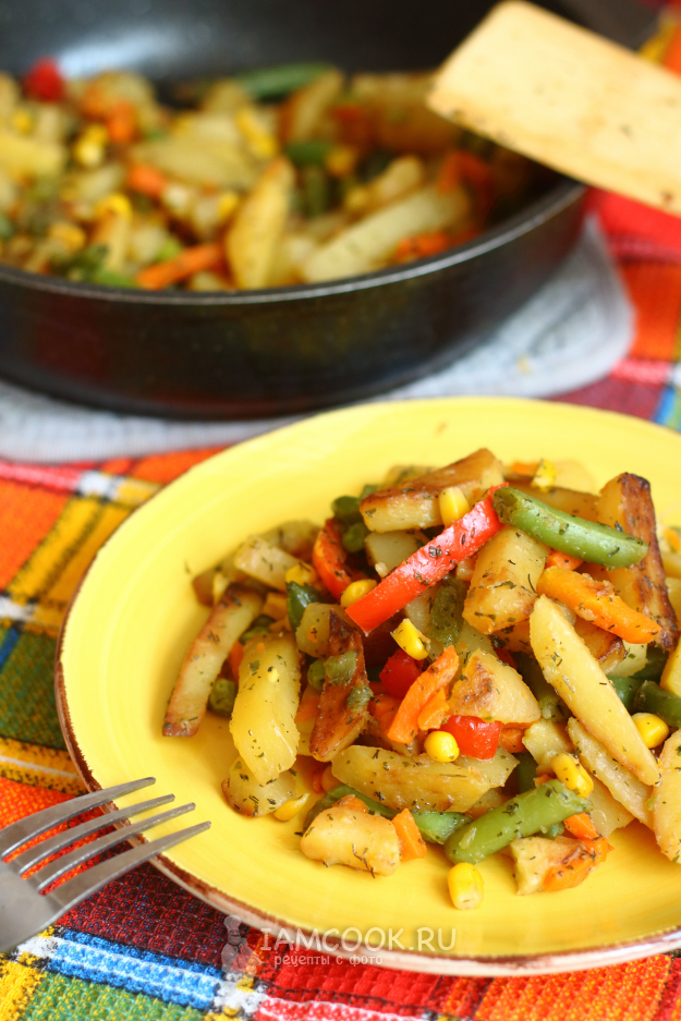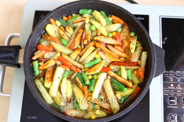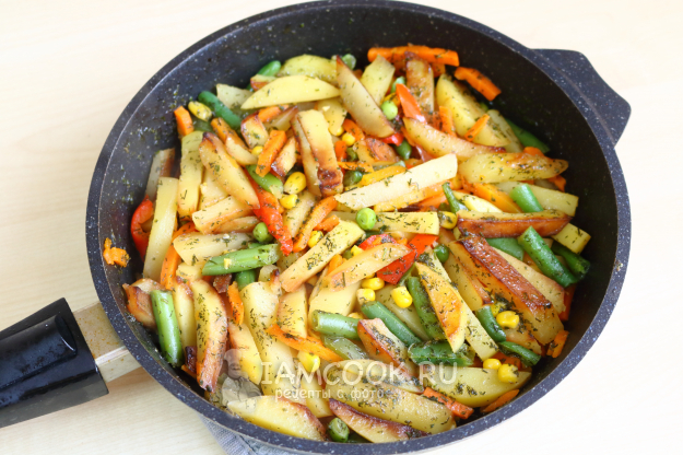 Картошка с мексиканской смесью готова! Солим и перчим дополнительно по вкусу.