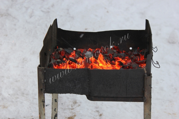 Для получения хороших углей дайте прогореть березовым поленьям или раскалите каким-либо образом уже заготовленные угли. Обычно для этого разводят костер из небольших веток или деревяшек. Когда они прогорят, то укладывают поверх готовые уже угли, которые при обмахивании раскалятся до нужной температуры.