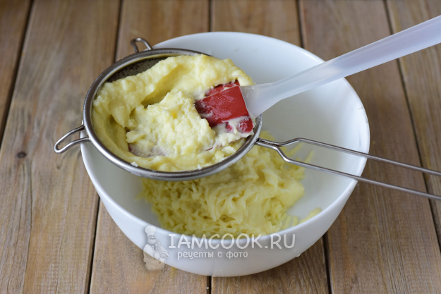 Осталось лишь протереть картофельную массу через сито с мелкими ячейками и нежнейшее картофельное пюре от Жоэля Робюшона готово.