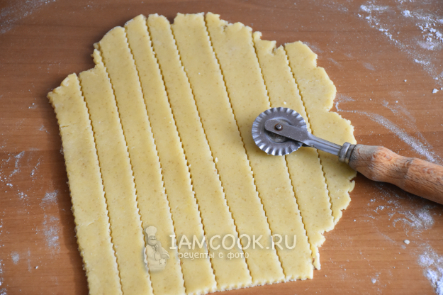 Оставшееся тесто раскатать в прямоугольник и нарезать на полоски.
