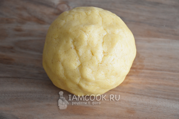 Как только тесто собралось в шар, выложить на присыпанную мукой поверхность и замесить однородное гладкое тесто. Завернуть в пищевую пленку и отправить в холодильник минимум на 30 минут.