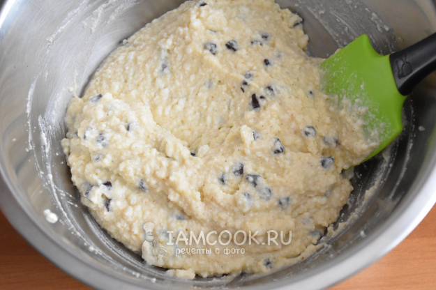 Добавить шоколадные капли и еще раз тщательно перемешать лопаткой.