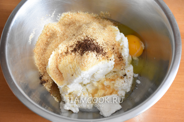 Тем временем приготовим начинку. В миске соединить рикотту, яйцо, сахар, ваниль и хорошо перемешать. Можно взбить миксером на низких оборотах.