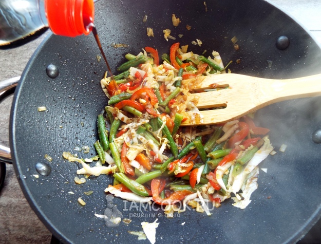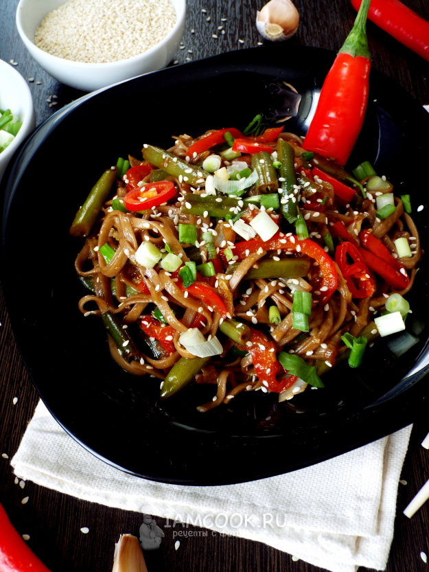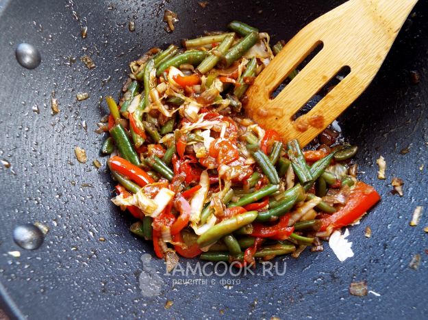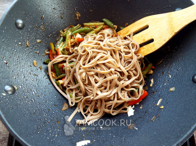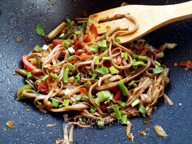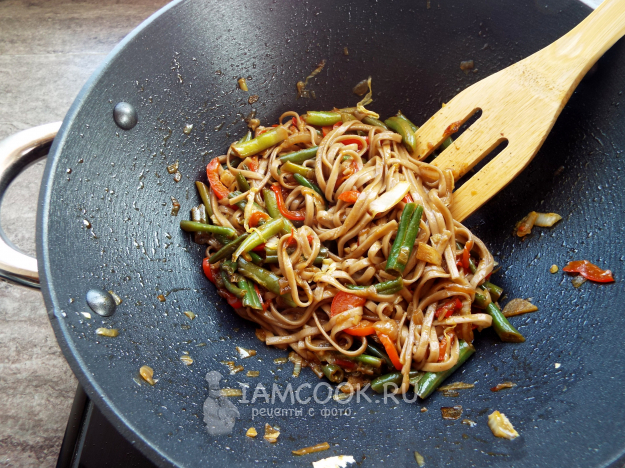 Лапша вок с фасолью (стручковой) и другими овощами готова.