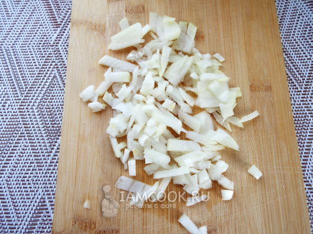 Лук нарезать кубиком.
