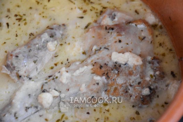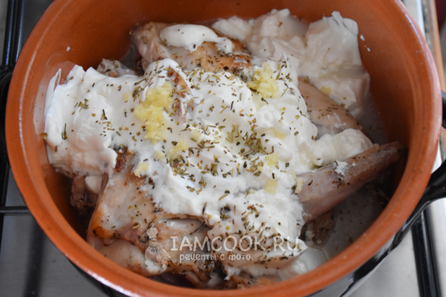 Добавить сметану, воду, 1/2 ч.л. прованских трав и чеснок, пропущенный через пресс.