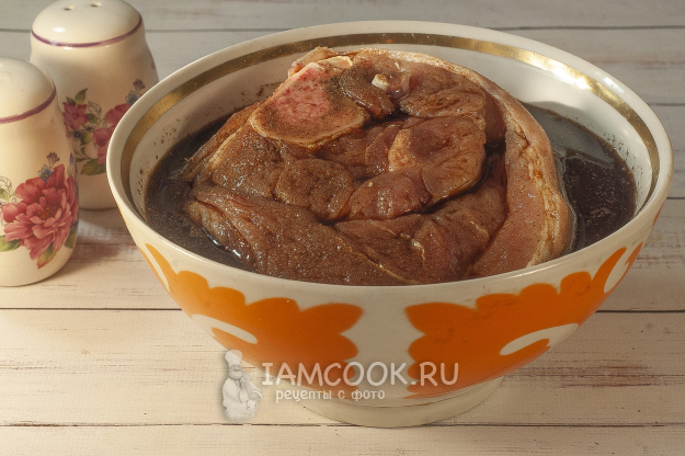 На следующий день извлечем рульку из маринада, оботрем салфеткой или полотенцем.