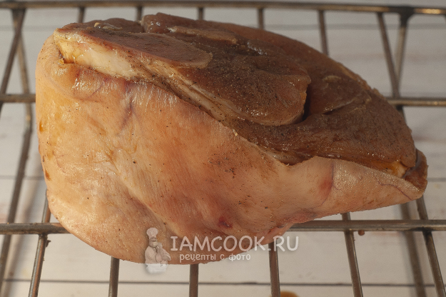 Подготовьте ингредиенты для приготовления копченой рульки горячего копчения.