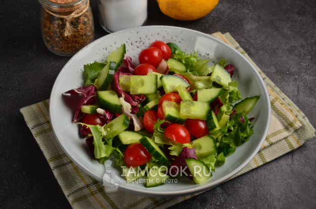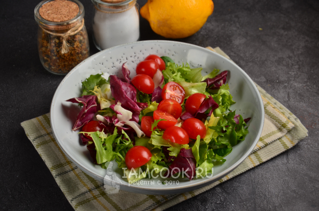 Заправьте салат растительным маслом, соком лимона, подсолите и добавьте по желанию специи. Перемешайте.