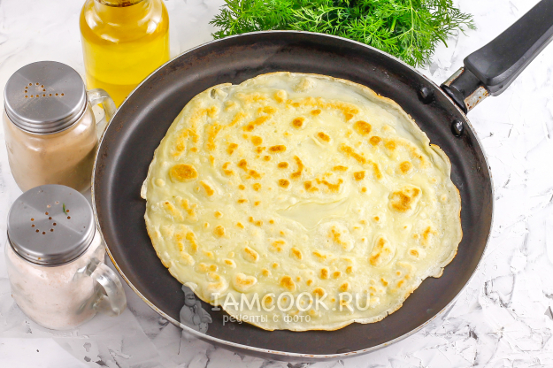 Прогрейте блинную сковороду и в первый раз смажьте ее растительным маслом. Влейте порцию теста, распределите его по дну сковороды и испеките тонкий блин по 1-2 минуте с каждой стороны. Таким образом обжарьте и остальные блины.
