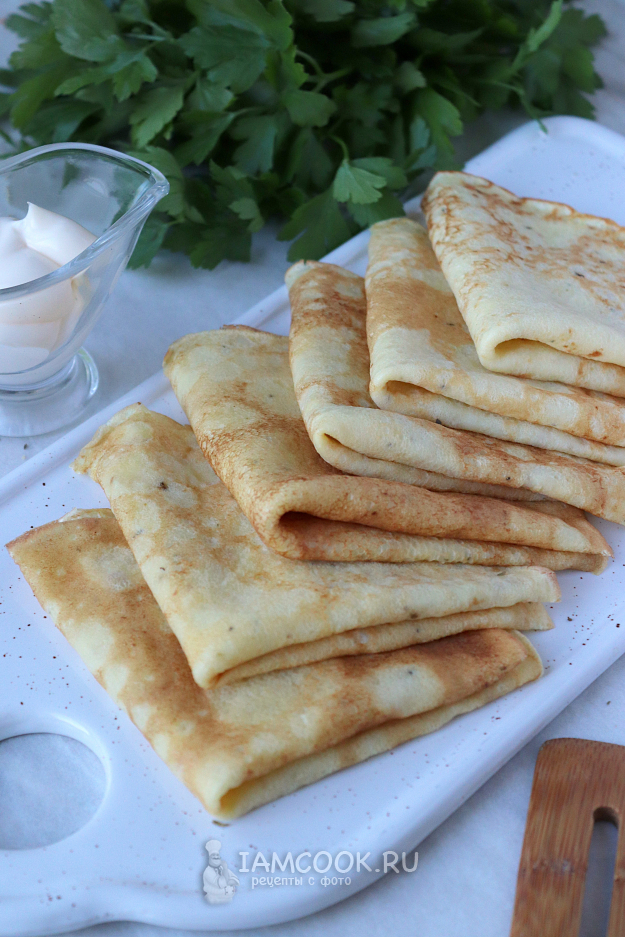 По данному рецепту блинчики из пекинской капусты получаются очень вкусными и нежными. Подавайте их на стол в тёплом виде со сметаной или сметанным соусом.
