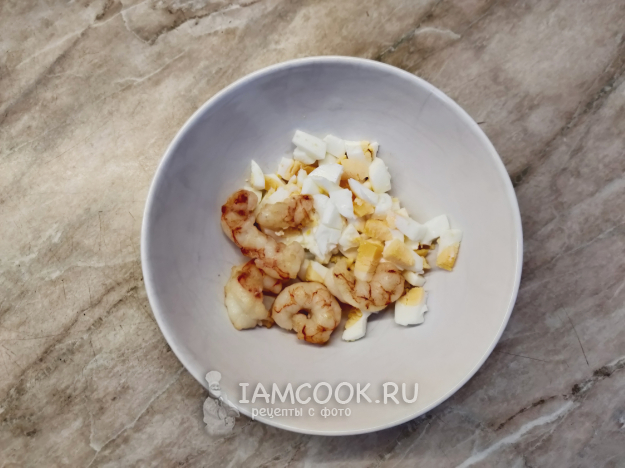 Добавьте креветок, которые уже впитали излишек масла.