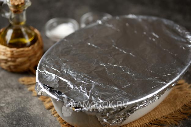Накройте форму фольгой, прижмите ее со всех сторон, отправьте в предварительно разогретую до 190 градусов духовку на 40-50 минут без конвекции. Спустя время выньте блюдо из духовки, не спешите снимать фольгу, пусть рис постоит под нею минут 15 и полностью дойдет до готовности.