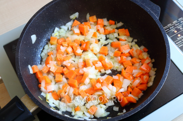 Выложите на сковороду с растительным маслом и обжарьте на небольшом огне 5 минут.