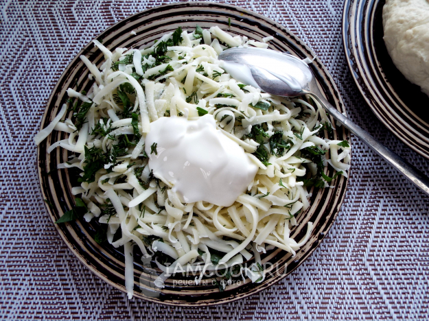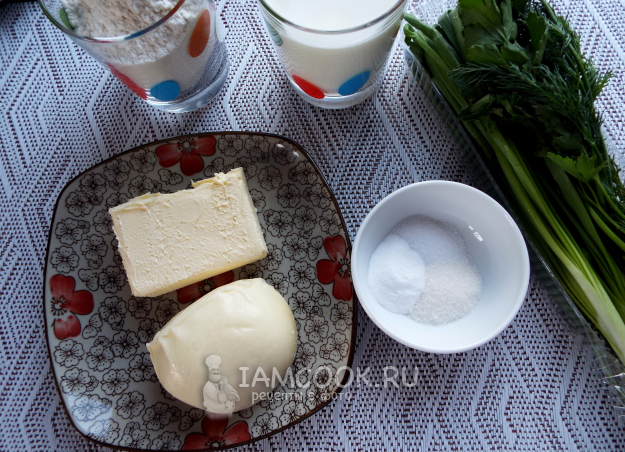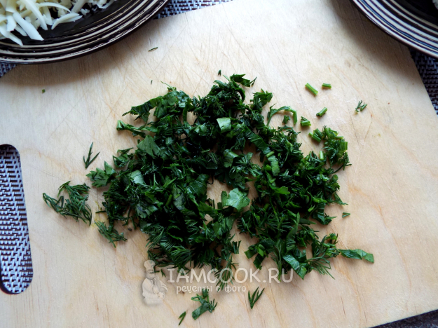 Приготовить продукты для лепешек хачапури с сыром и зеленью.