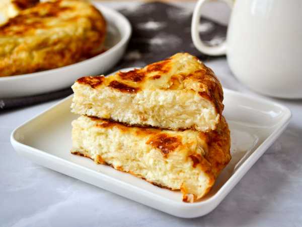 Поставим заполненную форму в заранее разогретую до 180 градусов духовку примерно на 40 минут. Показателем готовности заливного пирога с творогом и ягодами будут подрумяненные бортики и верх начинки, застывший наподобие творожной запеканки.
