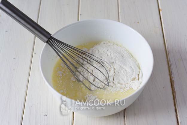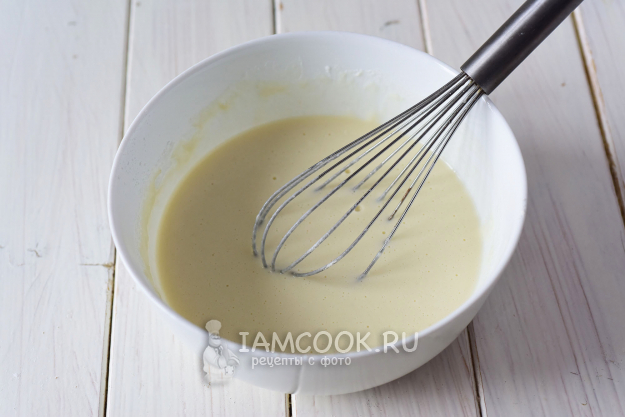 Добавим к молочной смеси рисовую муку и разрыхлитель.