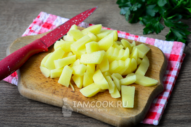 Почистите картофель и нарежьте его средними брусочками.