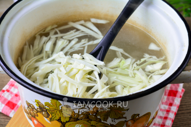 Если капуста зимняя, крепкая, то всыпьте ее сразу после картофеля. Варите овощи 10-15 минут - до мягкости.