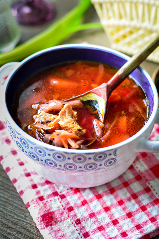 Подготовьте продукты для борща из индейки.