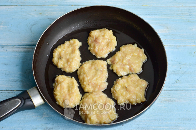 На сковороде разогрейте масло растительное. Выложите ложкой оладьи.