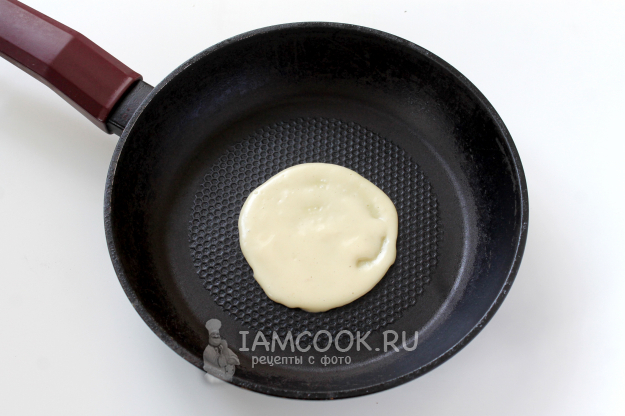 Выложите по 1,5-2 ст.л. теста на сухую раскаленную сковороду, размажьте по кругу.