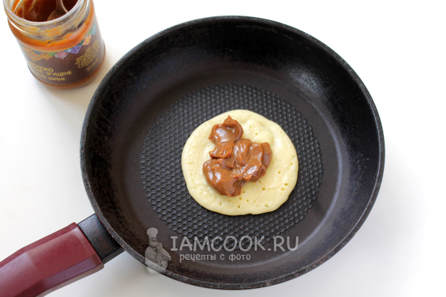 Добавьте 1-2 ч.л. начинки — вареной сгущенки.