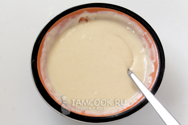 Замесите густое, однородное тесто для панкейков, схожее по консистенции со сметаной.