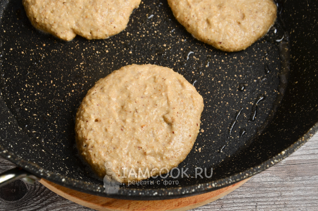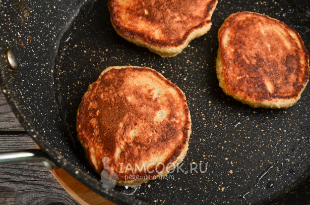 Для жарки этих панкейков нужно смазать сковороду растительным маслом. Затем ложкой нужно выкладывать небольшие порции теста на раскаленную поверхность и жарить на тихом огне с одной стороны 3 минуты.