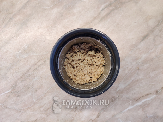 Очищенные грецкие орехи измельчите максимально мелко, практически в пасту. Понадобится мощный блендер.