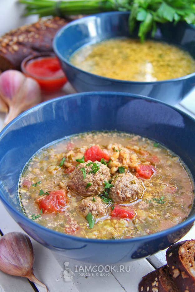 Добавьте в кастрюлю орехи и томаты в собственном соку. Перемешайте и варите суп до полной готовности фрикаделек на медленном огне, около 10 минут. Рис к этому времени должен уже успеть развариться.
