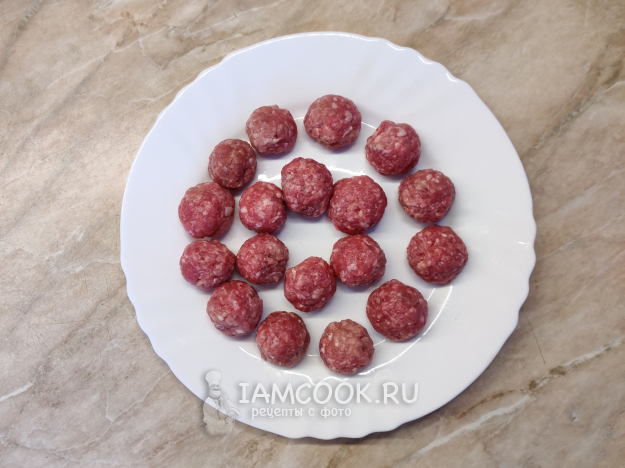 Из фарша сформируйте небольшие шарики - фрикадельки.