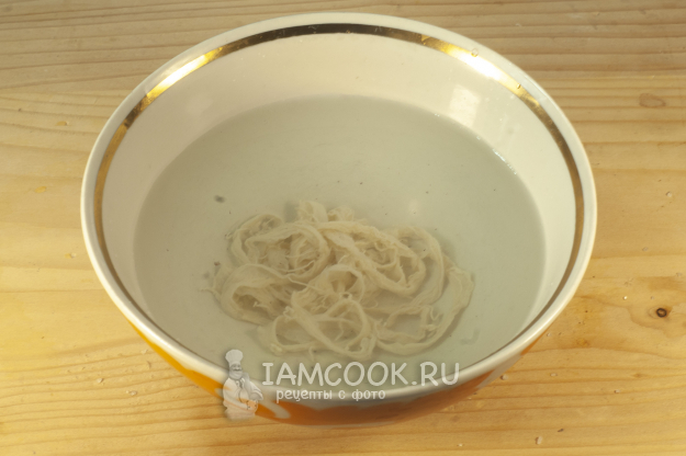 Хорошо промоем под краном снаружи и внутри. Поместим в миску с водой, пусть она там отмокает, пока мы будем заниматься мясом.