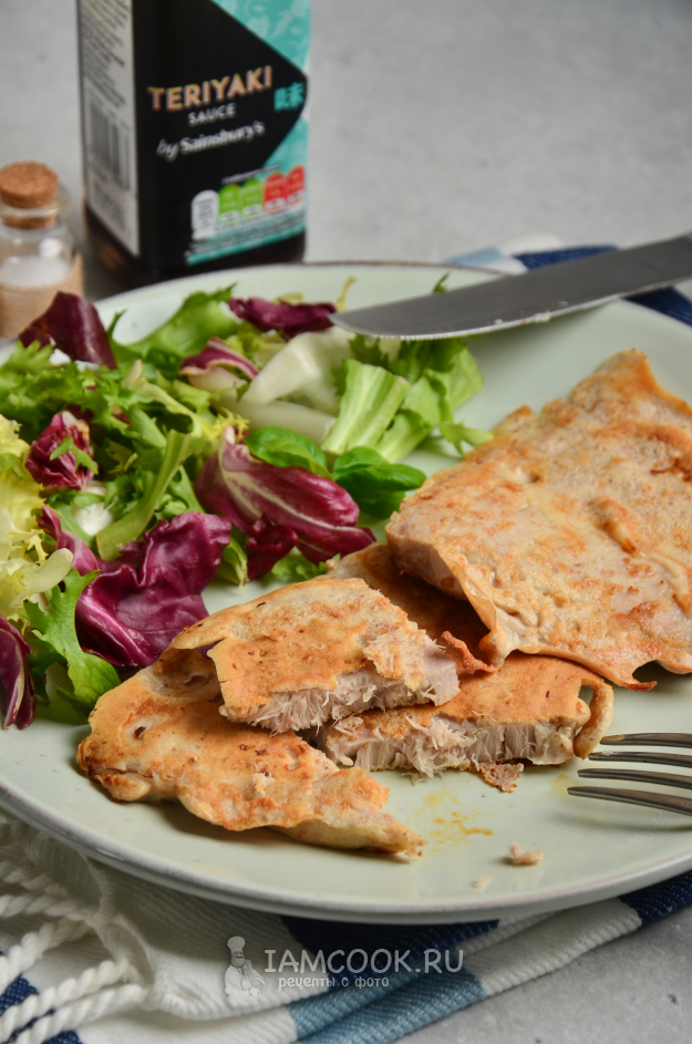 На сковороде нужно раскалить масло и отправить жариться кусочки тунца в кляре. Чтобы кляр не подгорел, пока рыба будет доходить до готовности, нужно сделать слабый огонь.