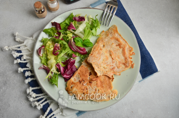 Подавать тунца в кляре можно сразу - со свежими овощами и зеленью, а также с гарниром.