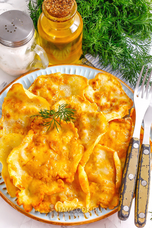 Прогрейте на сковороде растительное масло и убавьте нагрев до среднего. Столовой ложкой выложите в масло приготовленное тесто с мясом. Обжарьте заготовки 1-2 минуты с одной стороны.