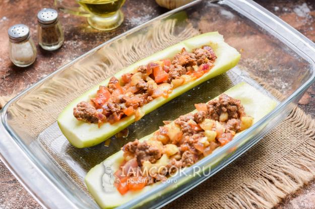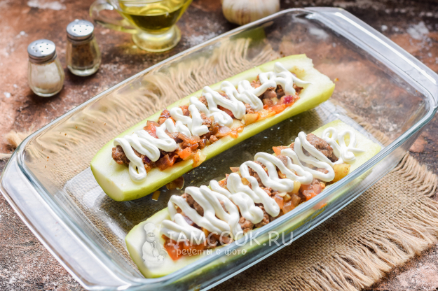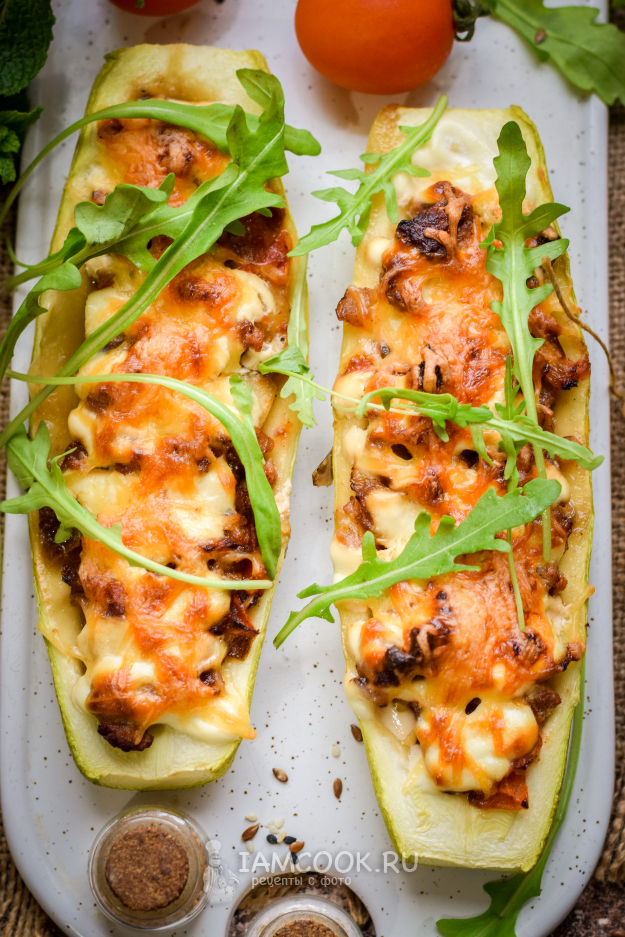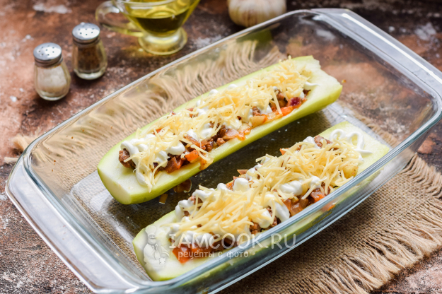 Наполнить кабачковые лодочки приготовленной смесью.