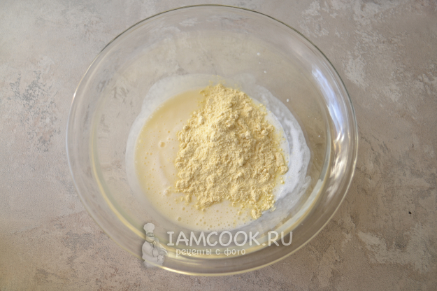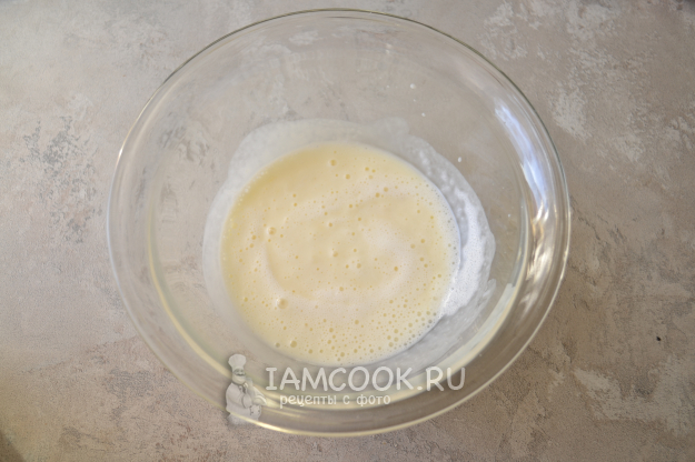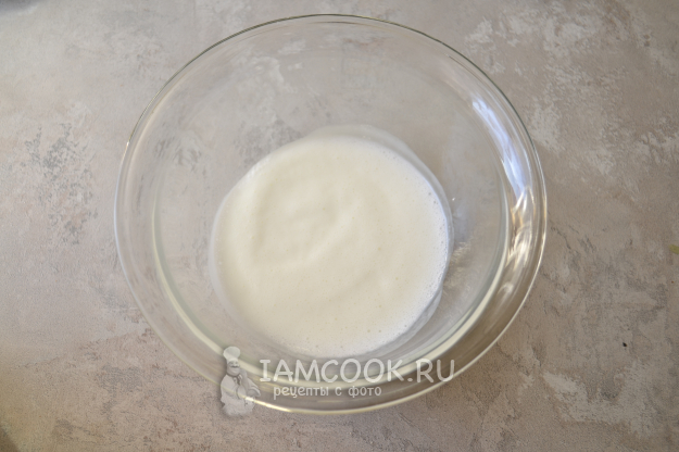 Вбейте в кефир яйцо и всыпьте соль (0,5 ч.л.).