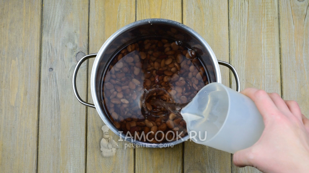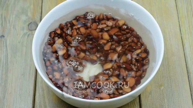 Фасоль замочим за 4-6 часов перед началом приготовления в холодной воде.