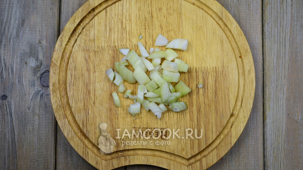 За это время успеем заняться овощами. Мелко нашинкуем репчатый лук.