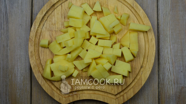 Картофель нарежем кубиками.